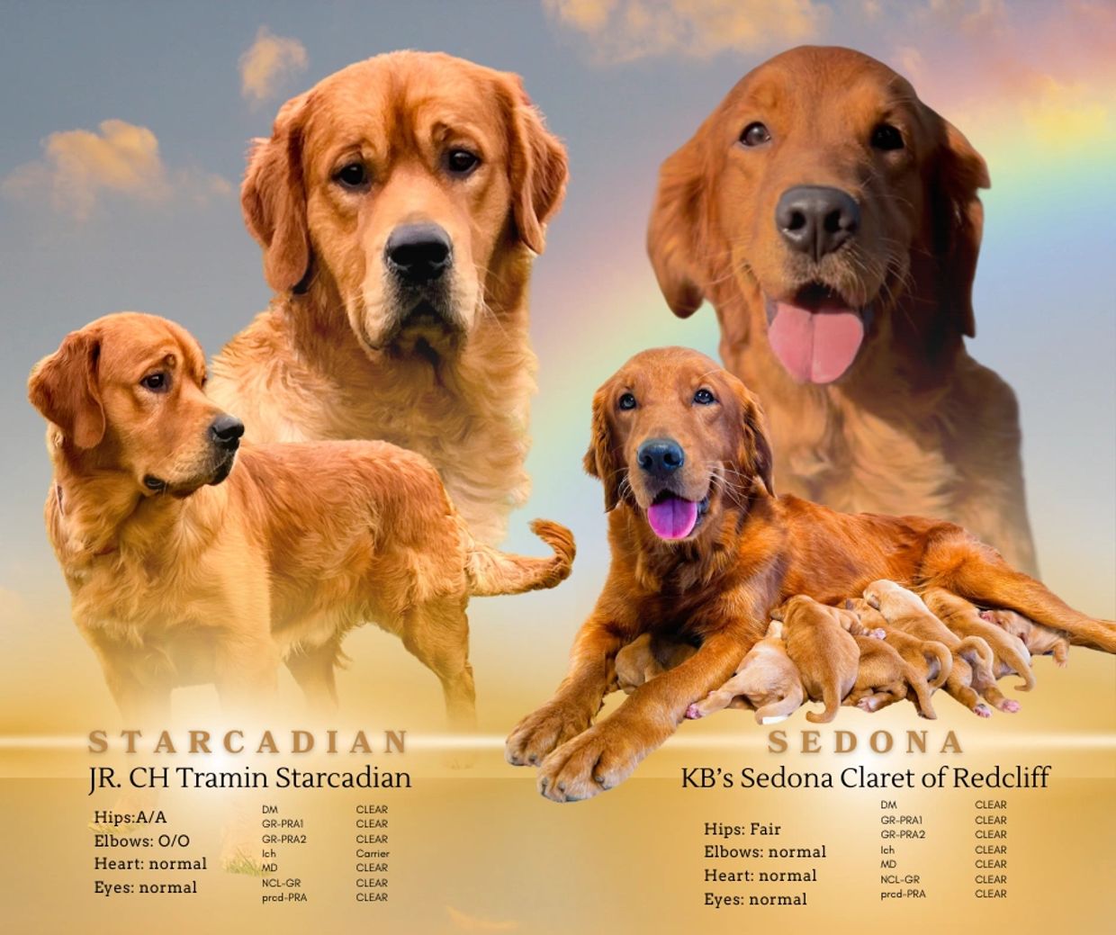 Coats will have a slight wave, possibly some white markings on chest and paws, and will finish out at medium length. Coat color is expected to be a red/bronze color at maturity.